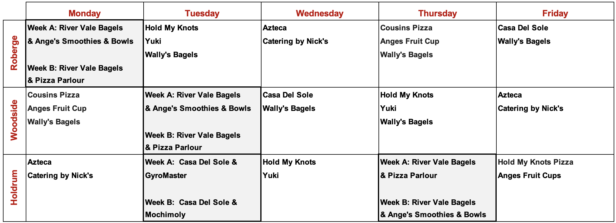 DID YOU KNOW… The PTA Lunch program is one of our most successful fundraisers! And it offers the students at Roberge, Woodside, and Holdrum delicious lunches provided by local vendors every day of the week.
